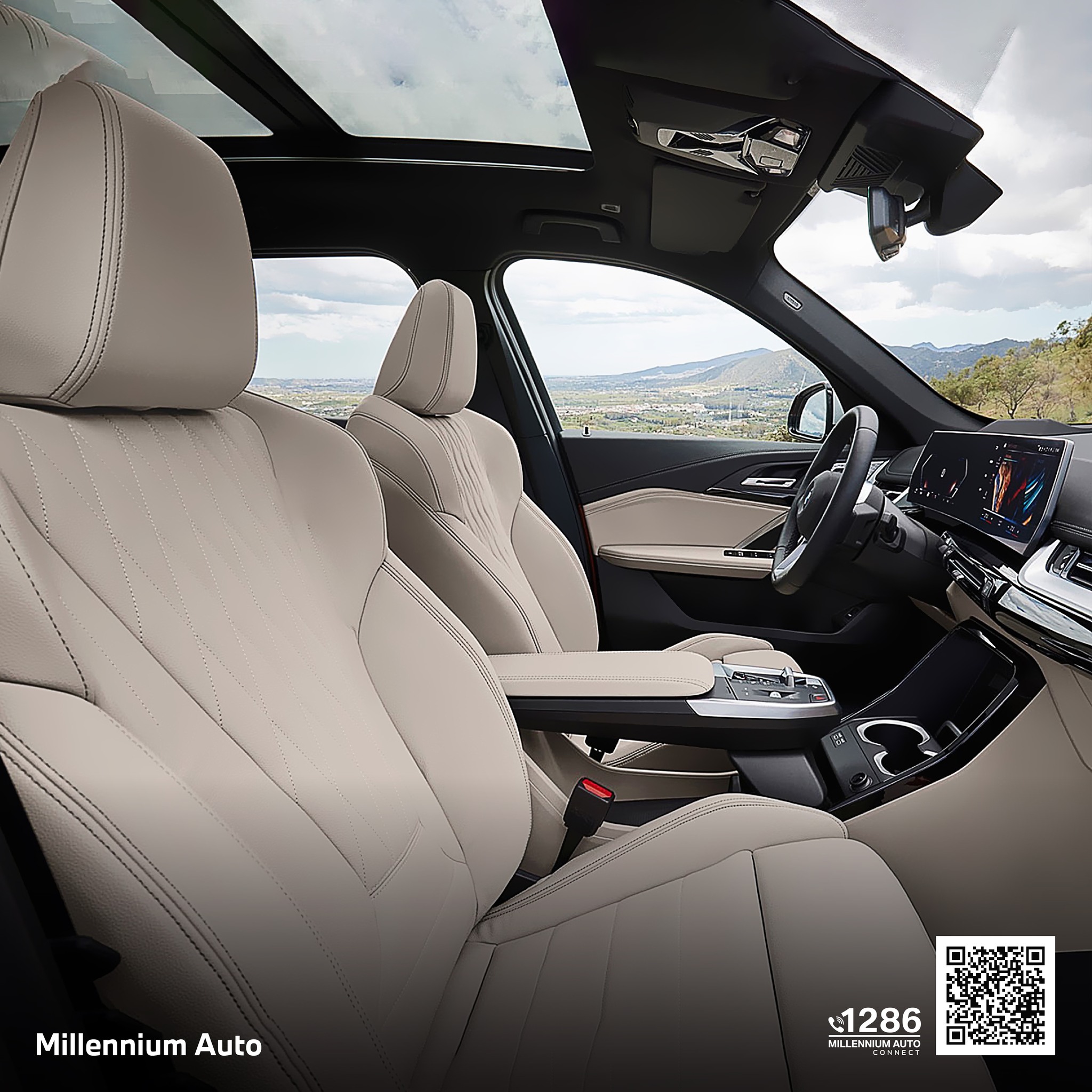 นอกจากความกว้างขวางที่เพิ่มขึ้นและบรรยากาศภายในห้องโดยสารระดับพรีเมียม ระบบควบคุม/การทำงานแบบใหม่พร้อมระบบปฏิบัติการ BMW 8 และ BMW Curved Display และระบบที่มีให้เลือกมากมายสำหรับการขับขี่อัตโนมัติและการจอดรถทำให้ All New BMW X1 xDrive30e M Sport เป็น SAV ขนาดกะทัดรัดที่พรีเมียม อาทิ BMW Live Cockpit Plus ที่มาพร้อมพร้อมจอแสดงผลแบบโค้งของ BMW Curved Display ที่เพรียวบางและไร้กรอบ พร้อมระบบควบคุมแบบสัมผัสและสั่งงานด้วยเสียง การนำทางบนคลาวด์ของ BMW Maps เข้าถึงแอพเพลง พอดแคสต์ และเกมที่หลากหลาย เบาะนั่งแบบสปอร์ตคู่หน้า Sensatec Oyster ที่มีตะเข็บและการเย็บที่ตัดกันแบบพิเศษ คอนโซลกลางที่ทันสมัย มาพร้อมกับสวิตช์/ตัวควบคุมการเลื่อนเปลี่ยนเกียร์ และช่องชาร์จสมาร์ทโฟนแบบไร้สาย ที่นั่งด้านหลังจึงให้ความสบายและพนักพิงพับได้แบบ 40:20:40