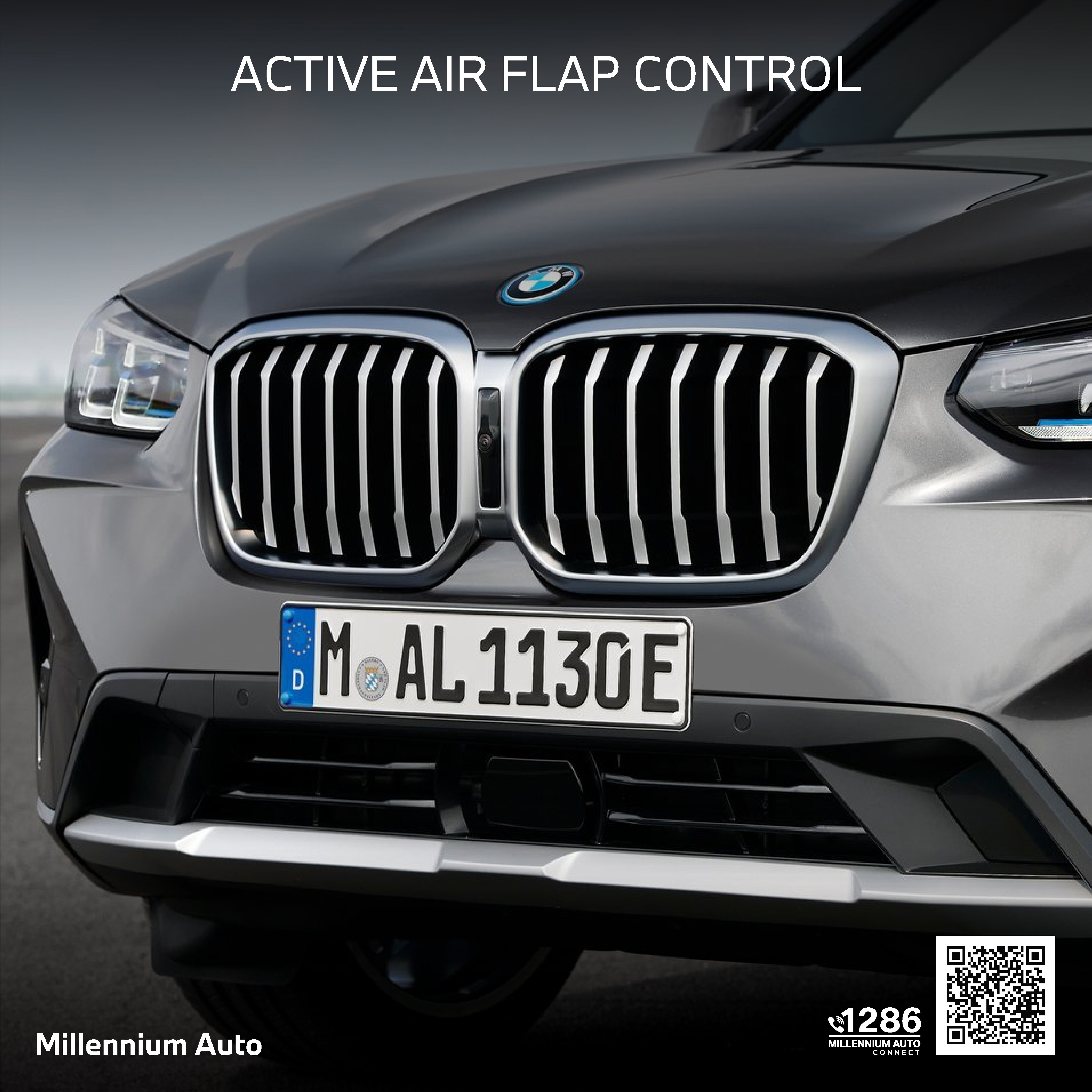 BMW X3 ใหม่ มาพร้อมกับกระจังหน้าใหม่สไตล์เดียวกับ iX3 พลังงานไฟฟ้า แต่ติดตั้งระบบ Active air flap control ที่ควบคุมการเปิดปิดของครีบกระจังหน้า เพื่อปรับอุณหภูมิเครื่องยนต์และเพิ่มแอโร่ไดนามิกซ์ของตัวรถ ส่วนกระจกบังลมหน้าเคลือบวัสดุ Acoustic เพื่อช่วยลดเสียงลมรบกวน