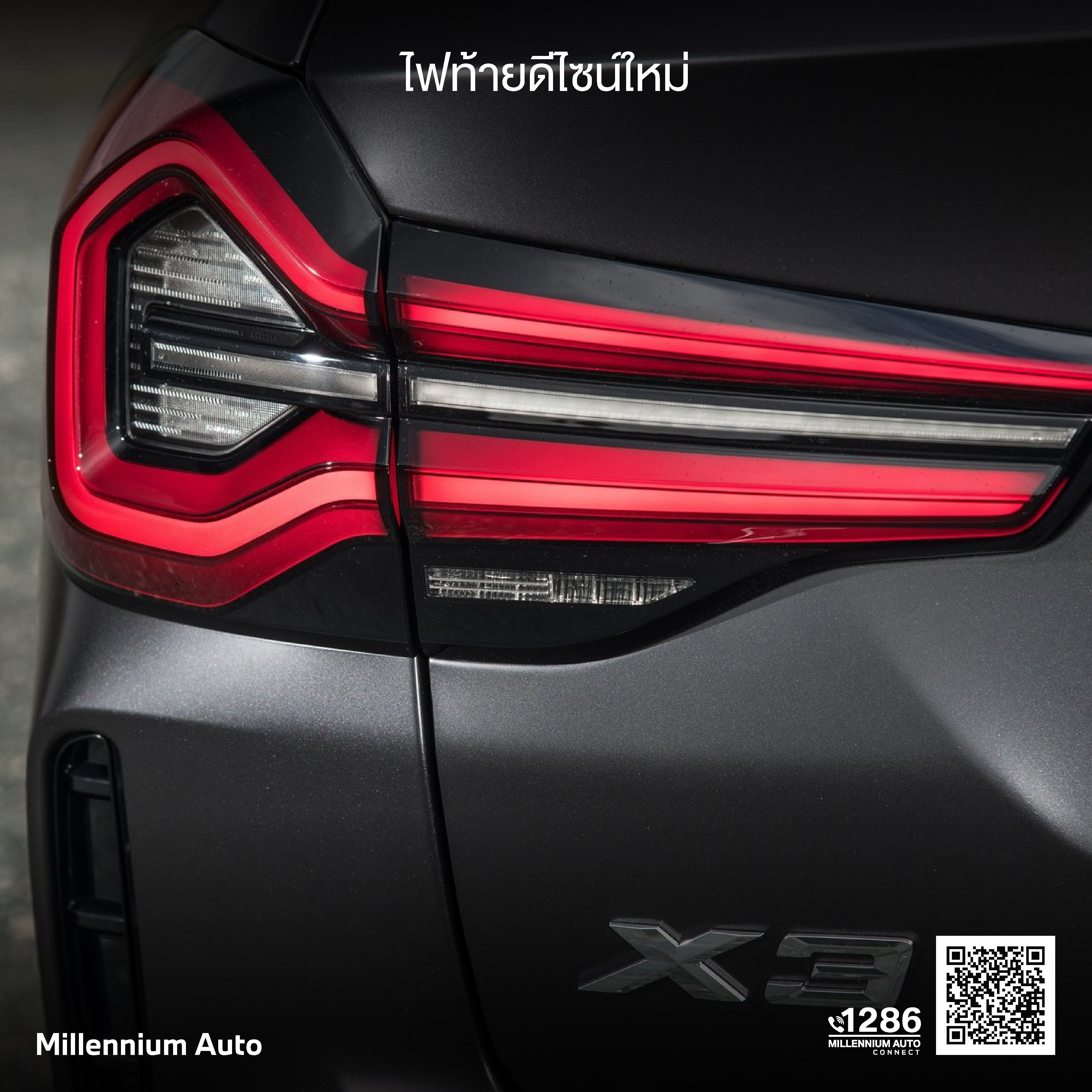 ไฟท้ายดีไซน์ใหม่ใน BMW X3 ได้ปรับมาใช้ LCD ภายในครอบสามมิติที่มีกรอบสีแดงล้อมไว้แบบ pincer graphic และไฟเลี้ยวแนวนอนที่เพื่มความสปอร์ตและทันสมัย