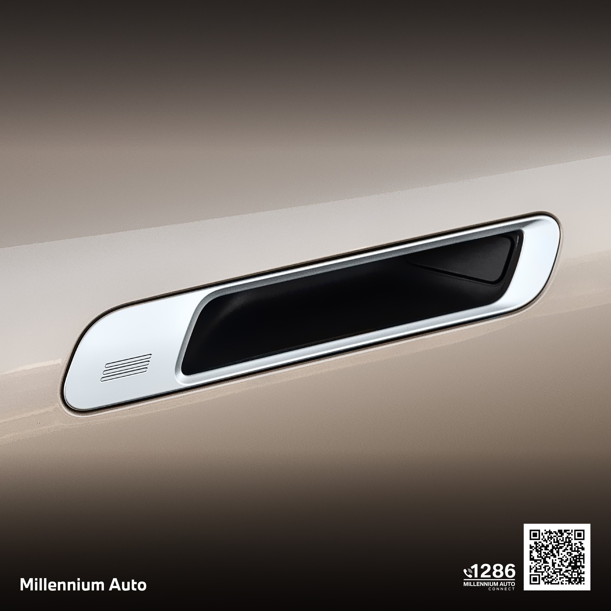 1) กระจังหน้ารูปไตคู่ดีไซน์ใหม่สำหรับยนตกรรมพลังไฟฟ้า ที่ปิดทึบเพิ่มแอร์โร่ไดนามิกส์ ติดตั้งอินเทอร์เฟซไฮเทค มัลติฟังก์ชั่นสำหรับระบบช่วยเหลือการขับขี่ขั้นสูง กล้อง เรดาร์ และเซนเซอร์อื่นๆ ถูกรวมไว้เบื้องหลังพื้นผิวโปร่งใส และยังมีหัวฉีดน้ำที่ซ่อนไว้สำหรับโผล่ออกมาสเปร์ยน้ำล้างกล้องให้สะอาดเอี่ยม