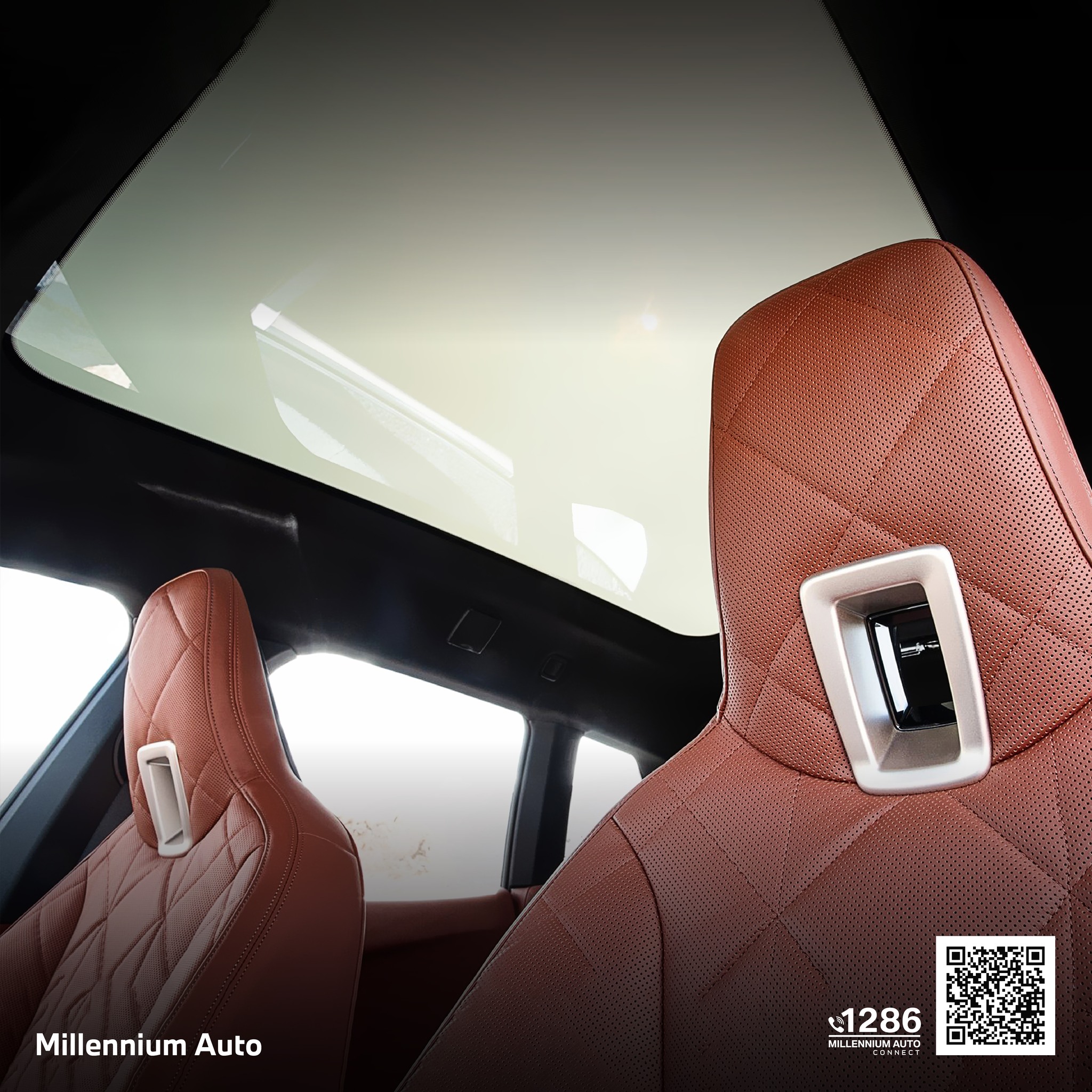 6) หลังคาแก้วแบบพาโนรามาที่ครอบคลุมความยาวทั้งหมดของรถปรับการบังแดดแบบอิเล็กโทรโครมิกแทน ซึ่งสามารถเปิดใช้งานได้ด้วยการกดปุ่มเพียงปุ่มเดียว เพื่อป้องกันภายในห้องโดยสารจากแสงแดดโดยตรง