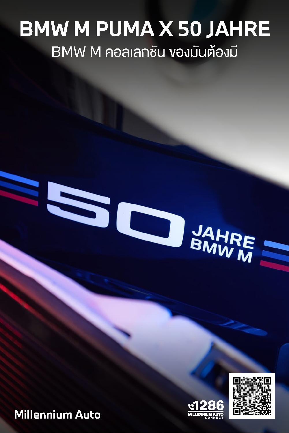 ความหลงใหลใน BMW M มิใช่มีเพียงแต่รถยนต์ แต่มันกระจายไปถึงโปรดักซ์อื่นๆ ที่มีแฟนคลับรออุดหนุนกันคับคั่ง คอลเลกชันพิเศษฉลองครบรอบ 50 ปี M สุดพิเศษที่สร้างขึ้นโดย PUMA ที่สร้างไอเท็มแฟชั่นซึ่งผสานสีสันแห่งประวัติศาสตร์ของ BMW M สีแดง สีฟ้าอ่อน และสีน้ำเงินเข้ม ไว้บนความสปอร์ตและดีไซน์ สตรีทแวร์อย่างชำนาญ พร้อมดัวโลโก้ “50 Jahre BMW M” ที่ประทับไว้เชื่อมโยงผู้สวมใส่กับ M อย่างลึกซึ่งอย่างลึกซึ้งกับประวัติศาสตร์ของแบรนด์