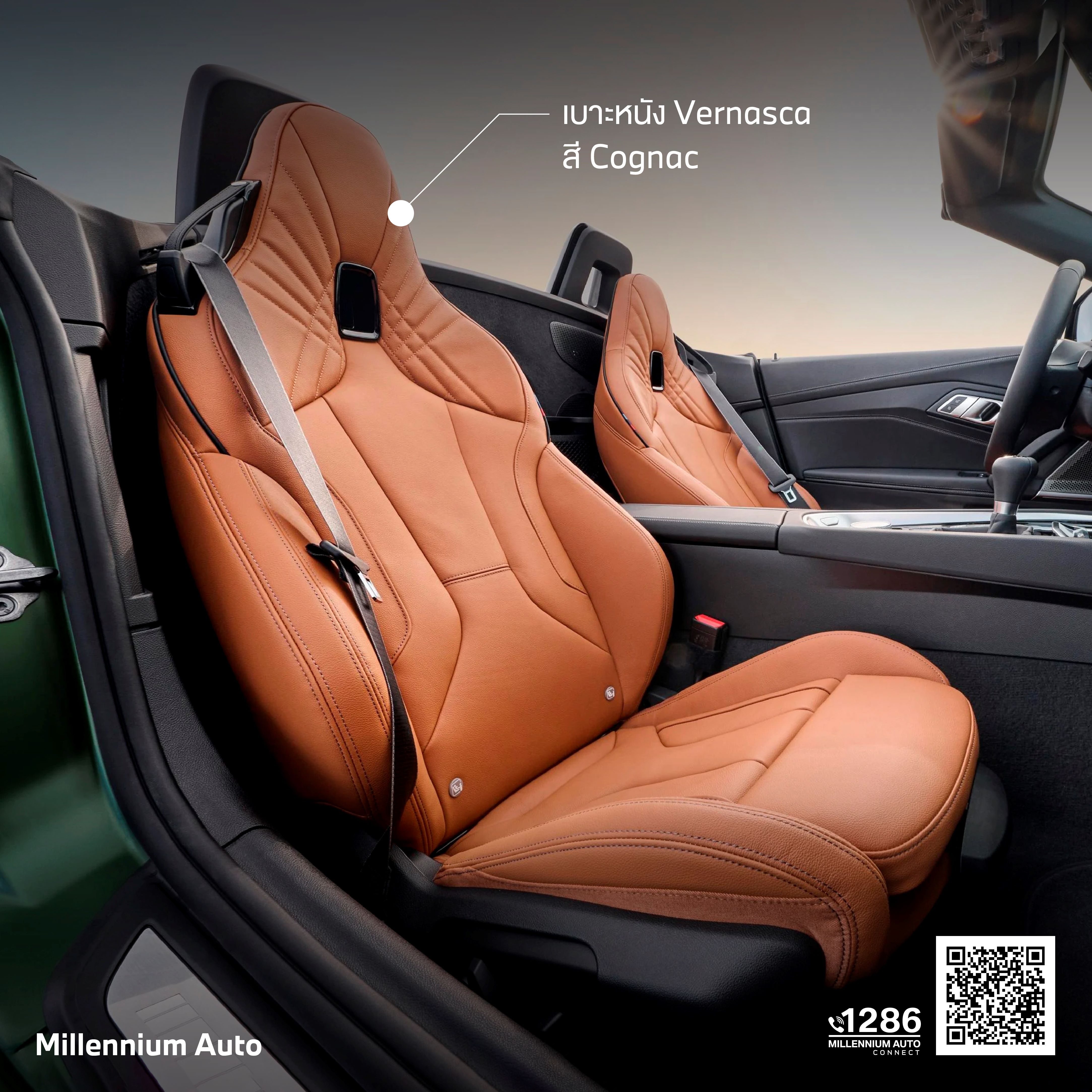 • เบาะหนัง Vernasca Cognac สีน้ำตาลอมส้ม ให้ความรู้สึกหรูหรา อบอุ่น และมีเอกลักษณ์ตัดด้วยด้ายสีดำนั้นใช้ในส่วนของตะเข็บเย็บเบาะและขอบเบาะ สร้างความคมชัดและดูมีสไตล์มากขึ้น