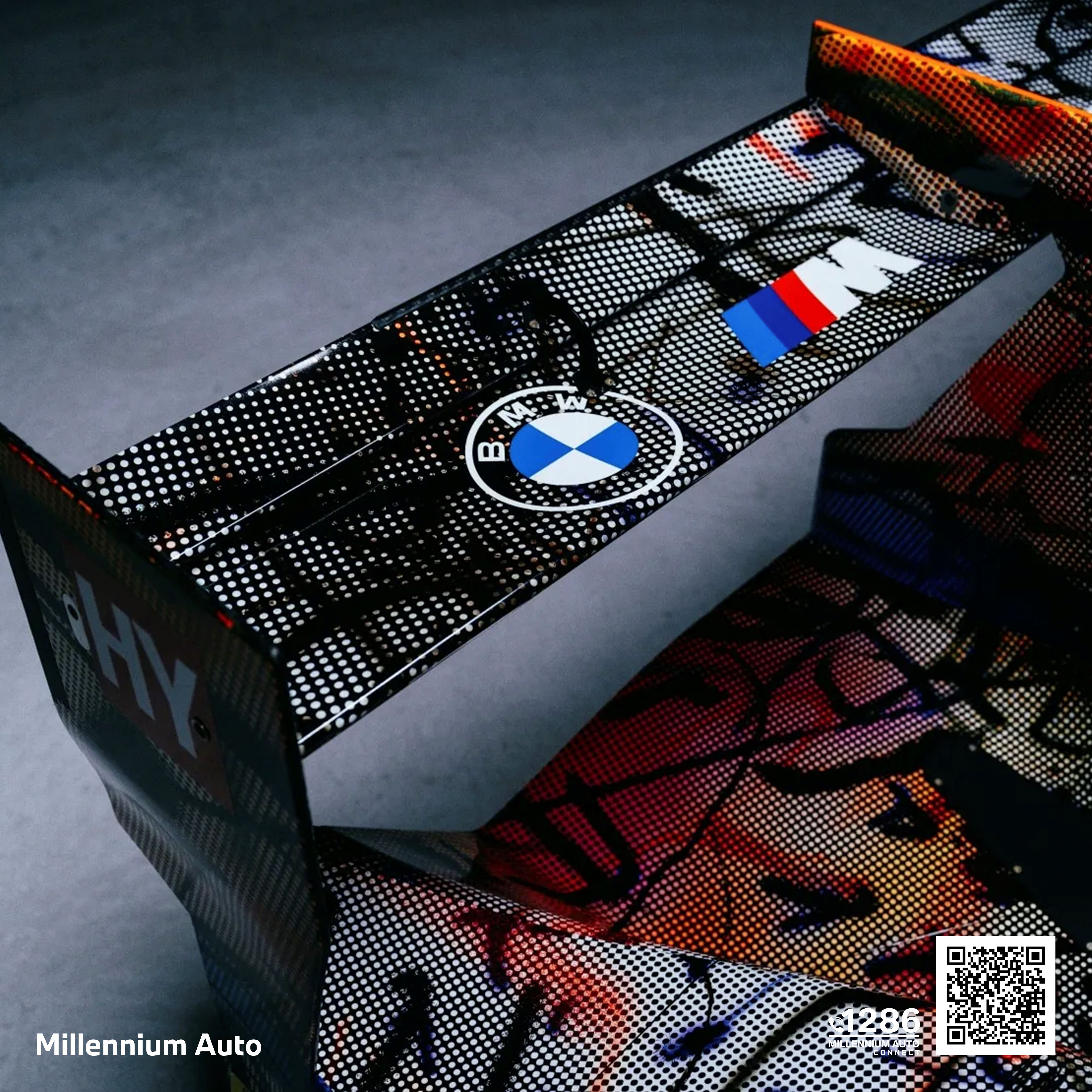 ความพิเศษของ BMW M Hybrid V8 Art Car ส่วนของโลโก้ BMW M ที่เมื่อรถจอดนิ่งๆ โลโก้จะแตกออกเป็นสีแดง ดำ ขาว และน้ำเงิน แต่เมื่อรถเคลื่อนที่ด้วยความเร็วบนสนามแข่ง ภาพจะเบลอมากจนเห็นรอยต่างๆ การเป็นภาพที่กำลังเคลื่อนไหว รถแข่ง M Hybrid V8 BMW Art Car #20 โดยจูลี เมห์เรตู กำลังจะสร้างประวัติศาสตร์หน้าใหม่ให้กับวงการศิลปะและมอเตอร์สปอร์ตไปพร้อมๆ กัน!